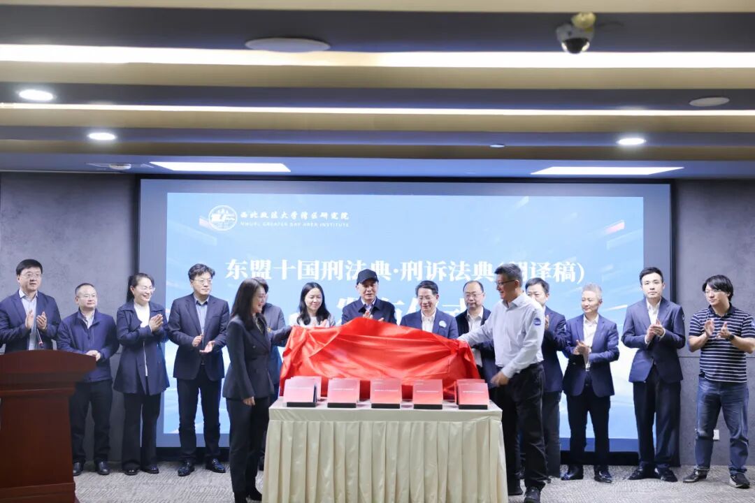 本次研讨会的重要成果——《东盟十国刑法典·刑诉法典(翻译稿)》正式发布。对由西北政法大学涉外刑事法治与国别检察司法研究中心、西北政法大学湾区研究院联合编译的《东盟十国刑法典·刑诉法典(翻译稿)》进行了发布。西北政法大学校党委书记赵万东与最高人民检察院涉港澳工作办公室副主任、二级高级检察官韩弋,对翻译稿进行了揭幕,与会领导嘉宾共同见证。