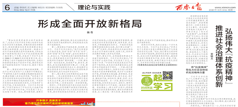 “要加快发展更高层次的开放型经济。”,这是以习近平同志为核心的党中央适应经济全球化新趋势、准确判断国际形势新变化、深刻把握国内改革发展新要求做出的重大战略部署,也是推动新一轮高水平对外开放的重要内容和具体体现。《形成全面开放新格局》是《习近平谈治国理政》第三卷的第七个专题,共收录了习近平总书记2018年至2019年的四篇重要文章,进一步推进了对外开放理论和实践创新,为我们持续推进更高水平的对外开放,推动形成全面开放新格局指明了前进方向、提供了根本遵循。