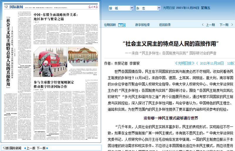 “社会主义民主的特点是人民的直接作用,以及改善党的领导、扩大党内民主和发展社会主义协商民主等各种因素的共存和协同作用。”意大利国家研究委员会国际法律研究所主任法比奥·马尔切利认为,“中国人权行动计划明确,目标之一是完善社会主义民主,畅通和拓展公民政治参与渠道,保障人民的知情权、参与权、表达权、监督权。”