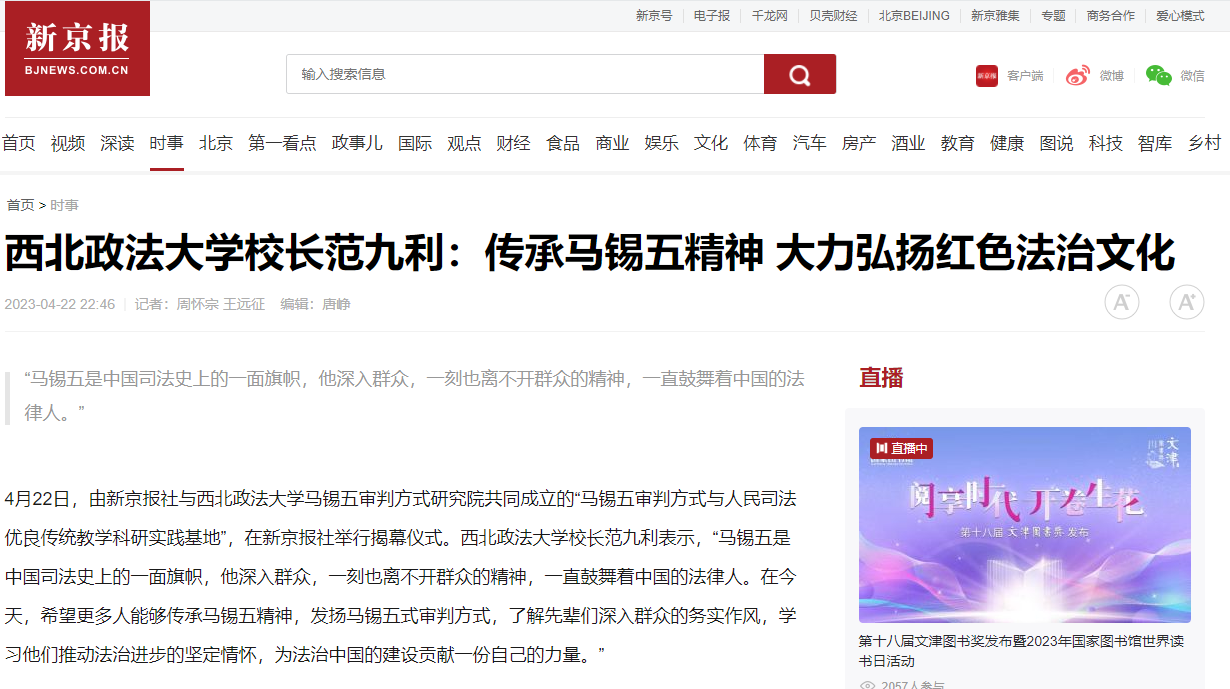 新京报:此次西北政法大学和新京报共建“马锡五审判方式与人民司法优良传统教学科研实践基地”,你希望基地发挥怎样的作用?