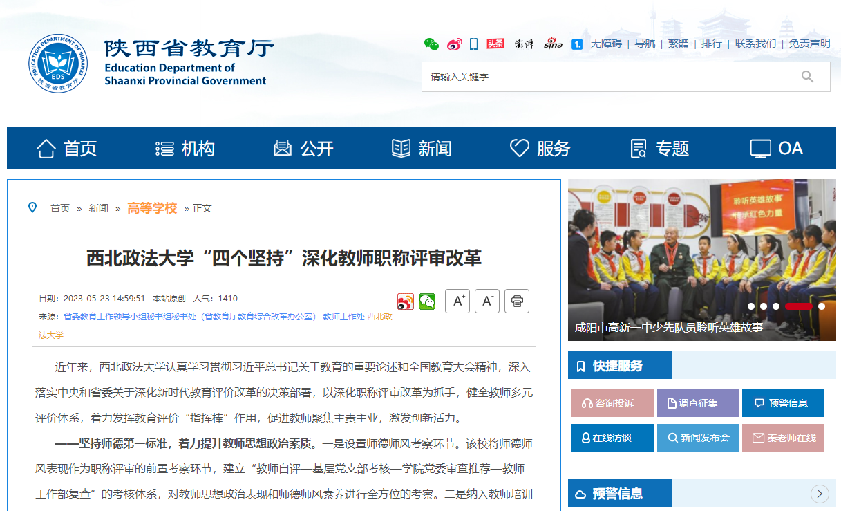 近年来,西北政法大学认真学习贯彻习近平总书记关于教育的重要论述和全国教育大会精神,深入落实中央和省委关于深化新时代教育评价改革的决策部署,以深化职称评审改革为抓手,健全教师多元评价体系,着力发挥教育评价“指挥棒”作用,促进教师聚焦主责主业,激发创新活力。