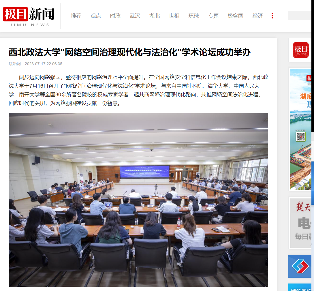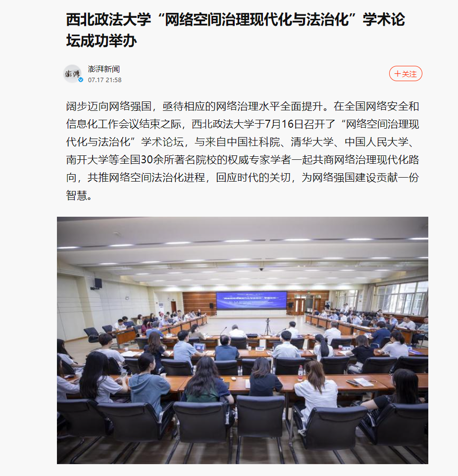 建设网络强国,营造风清气正的网络空间,离不开法治手段的保障。作为一所法学特色鲜明的高水平大学,西北政法大学不负时代使命、直面时代议题,召开此次“网络空间治理现代化与法治化”学术论坛,为中国互联网“良法善治”的建设贡献一份“西法大”力量。