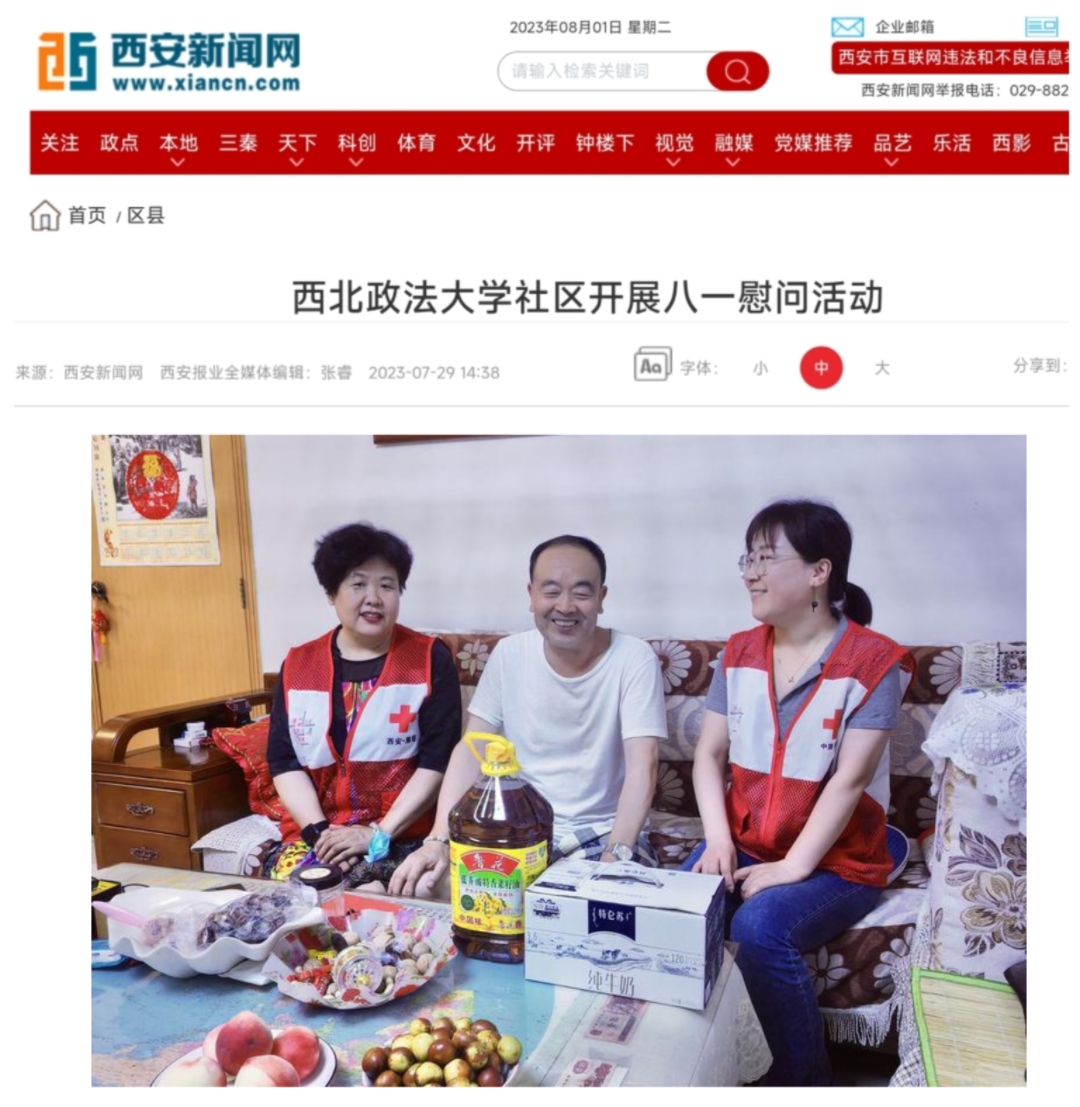 为弘扬拥军优属的优良传统,营造浓厚的“拥军崇军”的社会氛围,进一步增强退役军人的自豪感、荣誉感,7月28日,在八一建军节来临之际,西北政法大学社区开展走访慰问活动,上门看望退役军人。