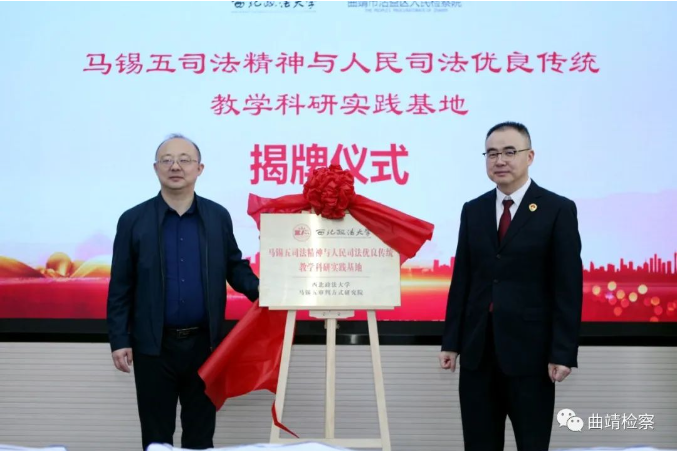会上,李卫国与马成共同为马锡五司法精神与人民司法优良传统教学科研实践基地揭牌。西北政法大学和沾益区人民检察院签订了检校共建框架协议,这也是曲靖市首家基层检察院检校合作基地。