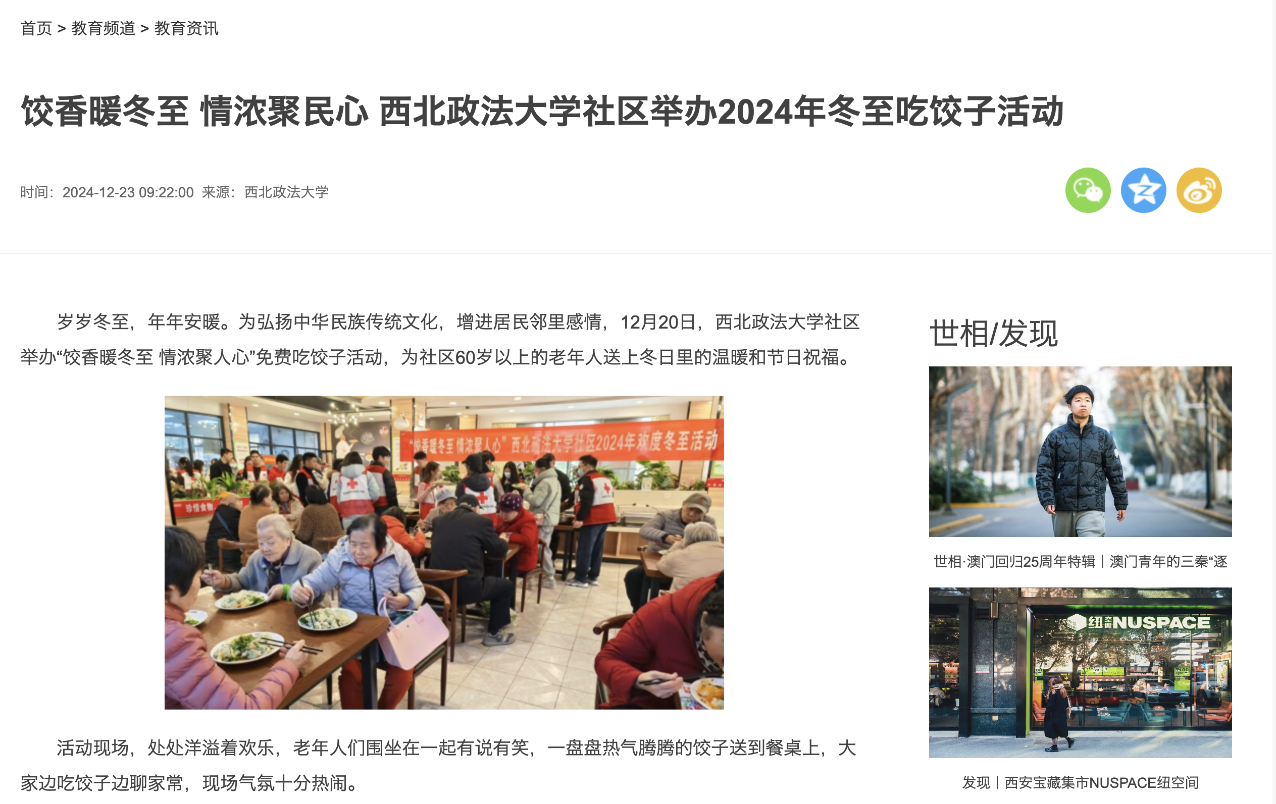 【西部网】饺香暖冬至 情浓聚民心 西北政法大学社区举办2024年冬至吃饺子活动http://m.cnwest.com/jyzx/a/2024/12/23/22920743.html