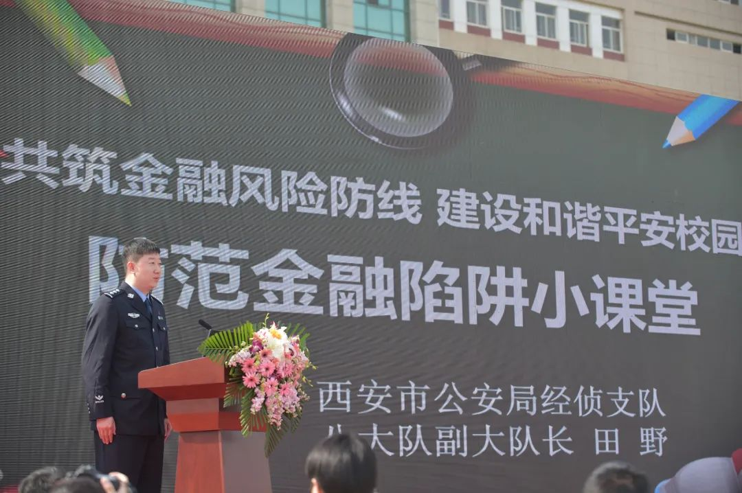 “当这些要素逐一露头时,你就有理由断定自己面对的是诈骗分子。”西安市公安局经济犯罪侦查支队田野警官,带来了接地气、受欢迎的《防范金融陷阱小课堂》。这堂讲座由防范电信诈骗、套路贷、新型数字藏品投资、新式传销等子课目组成,田野警官通过典型的案例和生动的语言,详细剖析了买卖游戏账号反被骗走3万元、超前消费以贷养贷落入圈套、跟风“投资”平台跑路惨遭损失等实例,逐个分析诈骗手段的特点并提出相应的防范措施,提醒学生们“陌生链接不点击、个人信息不透露”“天上不会掉馅饼,不要贪图高收益”,引导师生们深刻认识非法集资的危害性,进一步增强风险意识和识别能力。