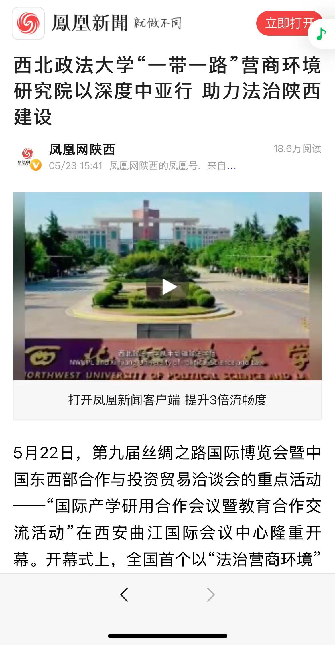 【凤凰新闻】西北政法大学“一带一路”营商环境研究院以深度中亚行 助力法治陕西建设 https://ishare.ifeng.com/c/s/8jaXSxx4GKj?spss=np&channelId=&aman=c3U071Gf68pf1ay56fu087O244e498u28dE319Fe91&gud=39Y016W796