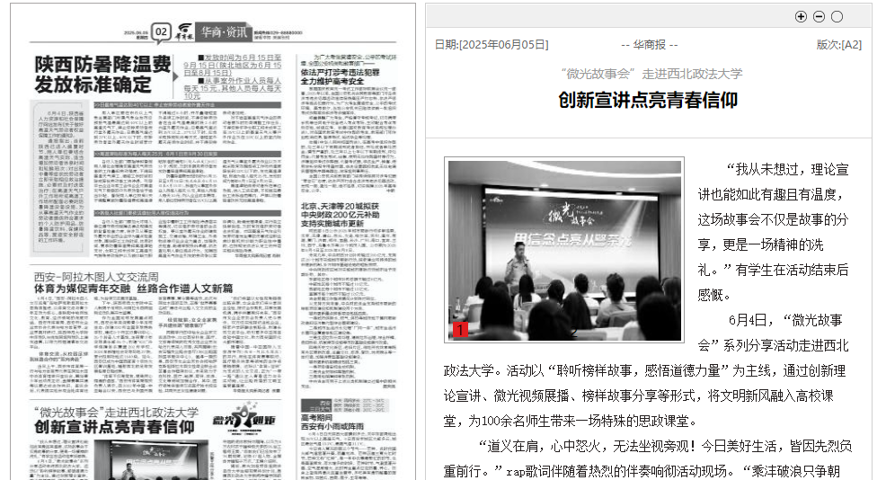 【华商网】“微光故事会”走进西北政法大学,创新宣讲点亮青春信仰http://ehsb.hspress.net/shtml/hsb/20250605/724459.shtml