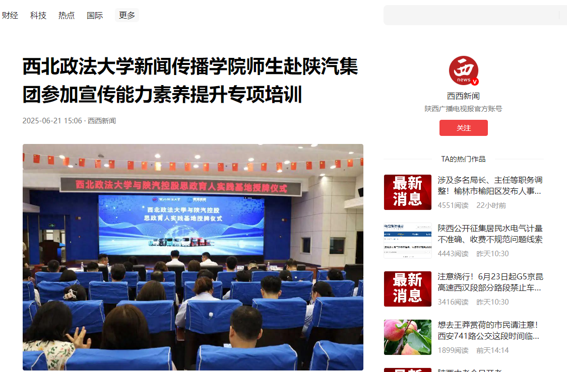 【西安新闻网】西北政法大学师生赴陕汽集团参加宣传能力素养提升专项培训 https://www.xiancn.com/content/2025-06/21/content_7153530.htm