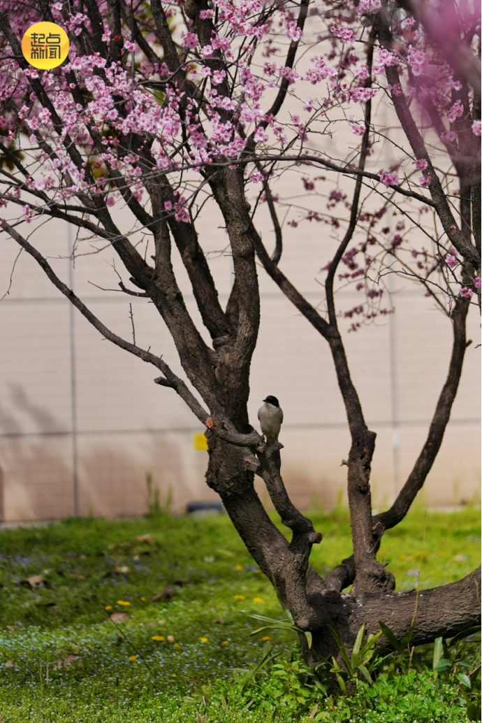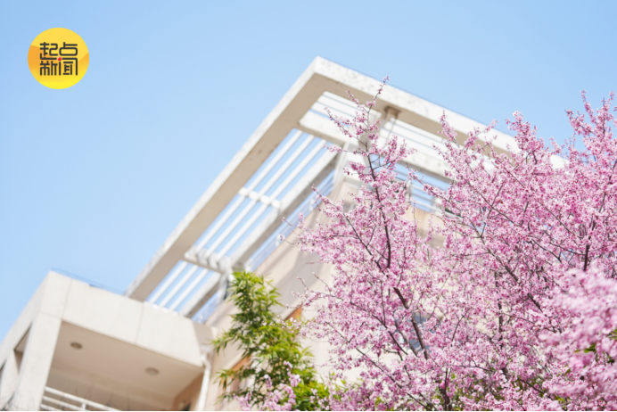 粉艳繁花与现代建筑相映成趣,春日的温柔与都市的简约碰撞出别样美感,尽显生机盎然。