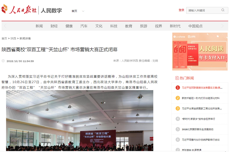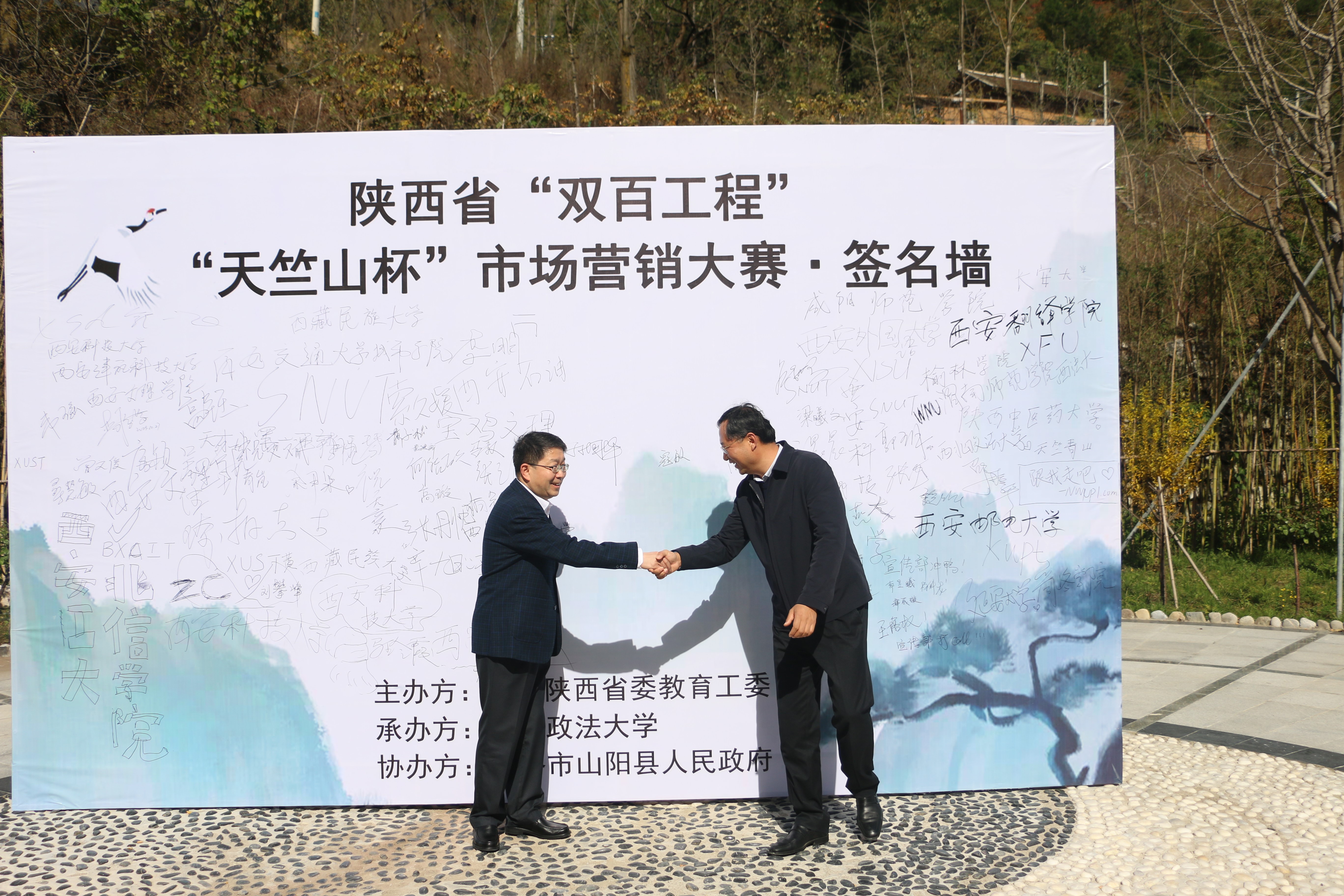 为深入贯彻落实习近平总书记关于打好精准脱贫攻坚战重要讲话精神,为山阳扶贫工作贡献高校智慧,10月26日至27日,由中共陕西省委教育工委主办,西北政法大学承办,商洛市山阳县人民政府协办的“双百工程”“天竺山杯”市场营销大赛总决赛在商洛市山阳县天竺山景区隆重举行。
