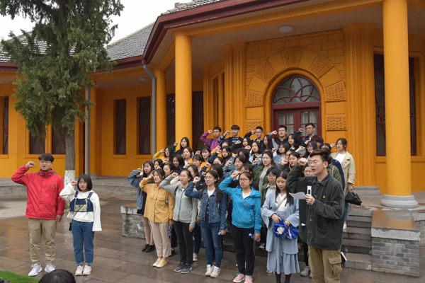 参观结束后,同学们来到新城黄楼旧址前,面向团旗,庄严宣誓。最后,活动在同学们高昂的团歌声中落下帷幕。