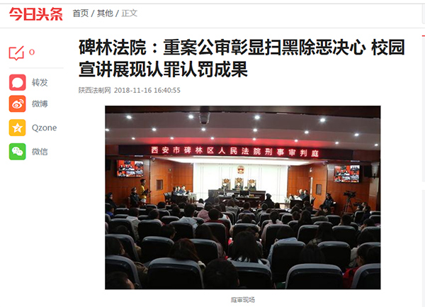 此次活动,是碑林法院通过对重大刑事案件公开审理,重拳出击、严惩罪犯,积极宣传扫黑除恶专项斗争的重大意义,彰显人民法院开展扫黑除恶专项斗争的坚定决心,同时呼吁并引导全社会积极投入到平安建设中来,共同营造平安建设人人参与的良好氛围。这次庭审也是碑林法院自新修订的刑事诉讼法颁布实施以来所进行的首次刑事案件公开开庭活动,碑林法院在此次庭审过程中,向广大师生们生动的展示了认罪认罚从宽制度在适用普通程序审理的刑事案件中促进被告人认罪悔罪、鼓励退赔退赃、弥合因犯罪所造成的社会创伤等方面所起的重要作用。