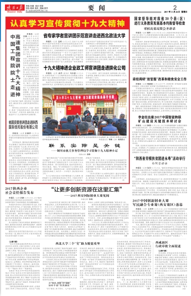 本报讯(记者吕扬)11月24日,党的十九大精神省专家学者宣讲团示范宣讲走进西北政法大学。宣讲团成员、陕西师范大学马克思主义学院院长任晓伟教授向200多名师生作宣讲报告。