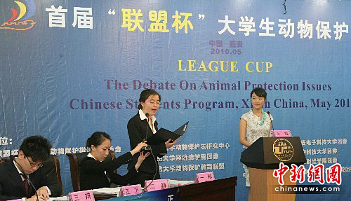 5月5日,全国首届“联盟杯”大学生动物保护辩论赛启动仪式在西北政法大学举行。本次辩论赛是由西北政法大学动物保护法研究中心,西北政法大学动物保护教育联盟,香港动物守护神公益机构联合发起,由西北政法大学、西安电子科技大学、西安石油大学、西安科技大学等高校团委联合主办。
