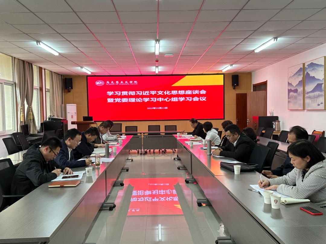 10月12日下午,马克思主义学院组织召开了学习贯彻习近平文化思想座谈会暨党委理论学习中心组(扩大)学习会议。校党委副书记郭武军,学院领导班子、党委委员、教研室主任、导师组组长、党支部书记和科级干部参加会议。会议由学院党委书记刘驰主持。