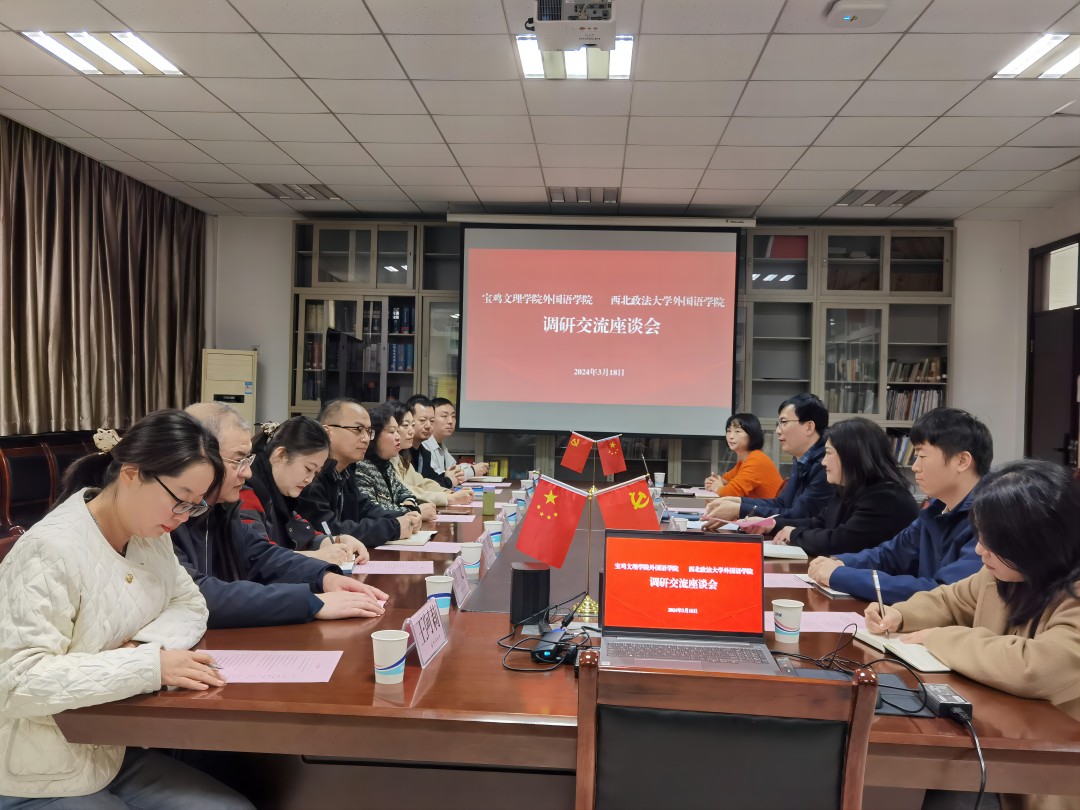 官莉萍对学院的热情接待表示感谢,介绍了宝鸡文理学院外国语学院的历史沿革和发展历程,并就党团建设、学生就业、工会工作等方面展开深入交流。
