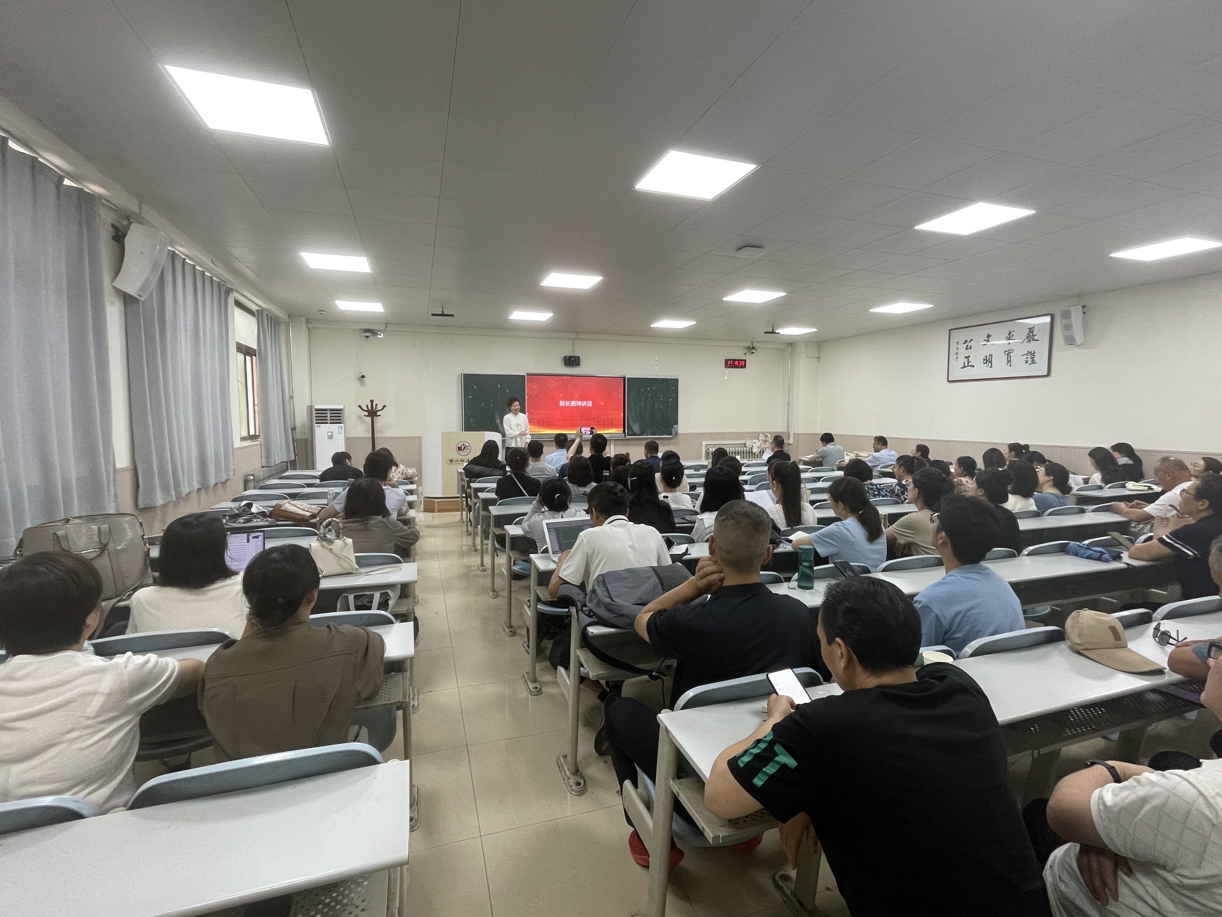 院长窦坤向为学院教育事业发展辛勤工作、默默耕耘的全体教职员工致以感谢。她表示,为做好本科教育教学审核评估工作,学院全体教职员工真正做到了全员动员、全员参与,上下齐心、统筹联动、真抓实干,顺利完成本科教育教学审核评估线上评估及入校评估大考。接下来,要以评估整改为契机,坚持“重内涵、补短板、谋发展”的工作思路,持续扎实推进学院内涵建设,全面提高教育教学质量,以更加优异的成绩迎接中华人民共和国成立75周年。她强调,要发扬“老延大”优良传统,立足岗位、勤奋敬业,要将个人发展和学院发展紧密联系起来,以高度的责任心和使命感凝心聚力,展现蓬勃发展的时代新气象;要面对困难迎难而上,特别是学院中层干部作为“关键少数”要善于“登高望远”,要坚决以舍我其谁的勇气和担当狠抓落实,展现挺膺奋进的时代新担当;要坚定信心、乘势而上,抓住机遇、担当作为,聚焦探索解决各项短板问题的有效路径,聚焦提升内涵发展的关键举措,全力做好各项工作,展现砥砺奋进的时代新作为。