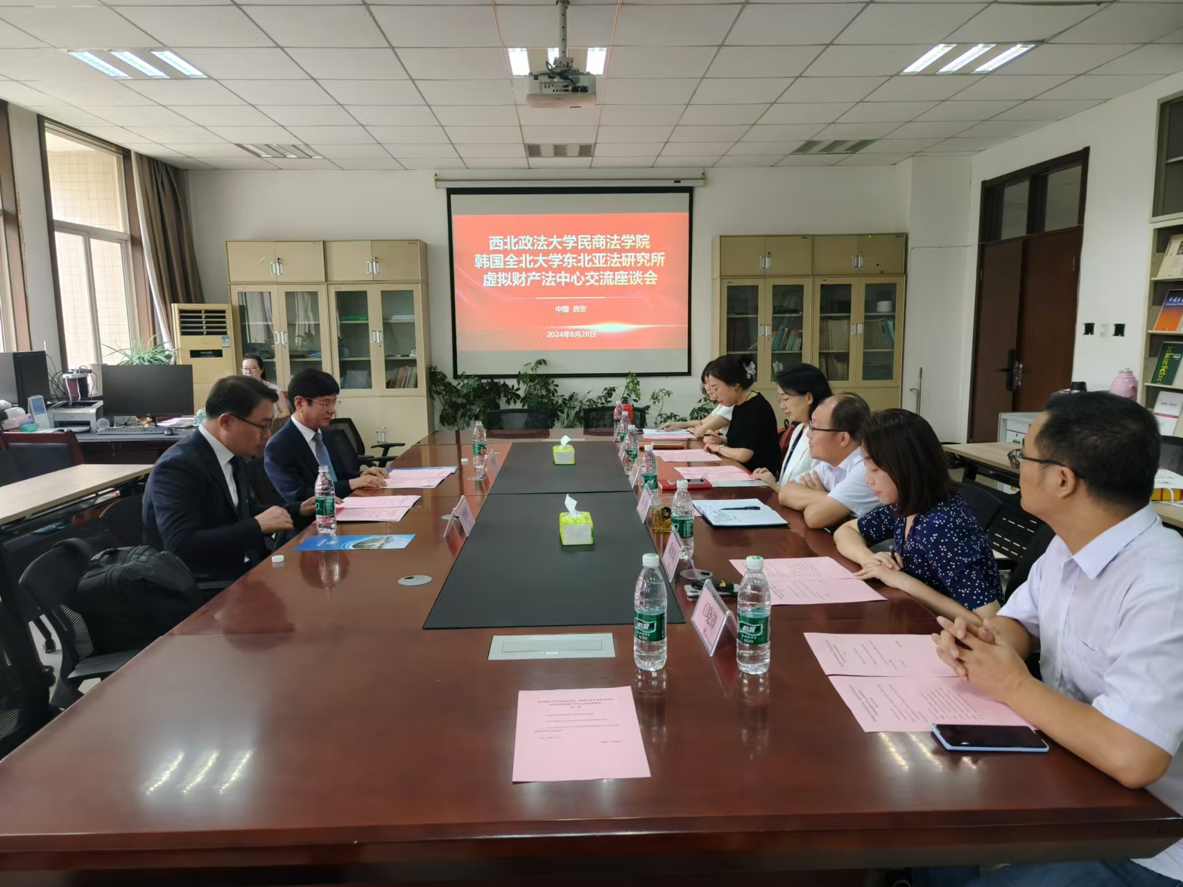 近日,民商法学院与韩国全北大学东北亚法研究所虚拟财产法中心举行交流座谈会。民商法学院党委书记朱茂、院长程淑娟,全北大学东北亚法研究所虚拟财产法中心主任宋文镐,我校国际交流与合作处副处长陈梦琦参加座谈。