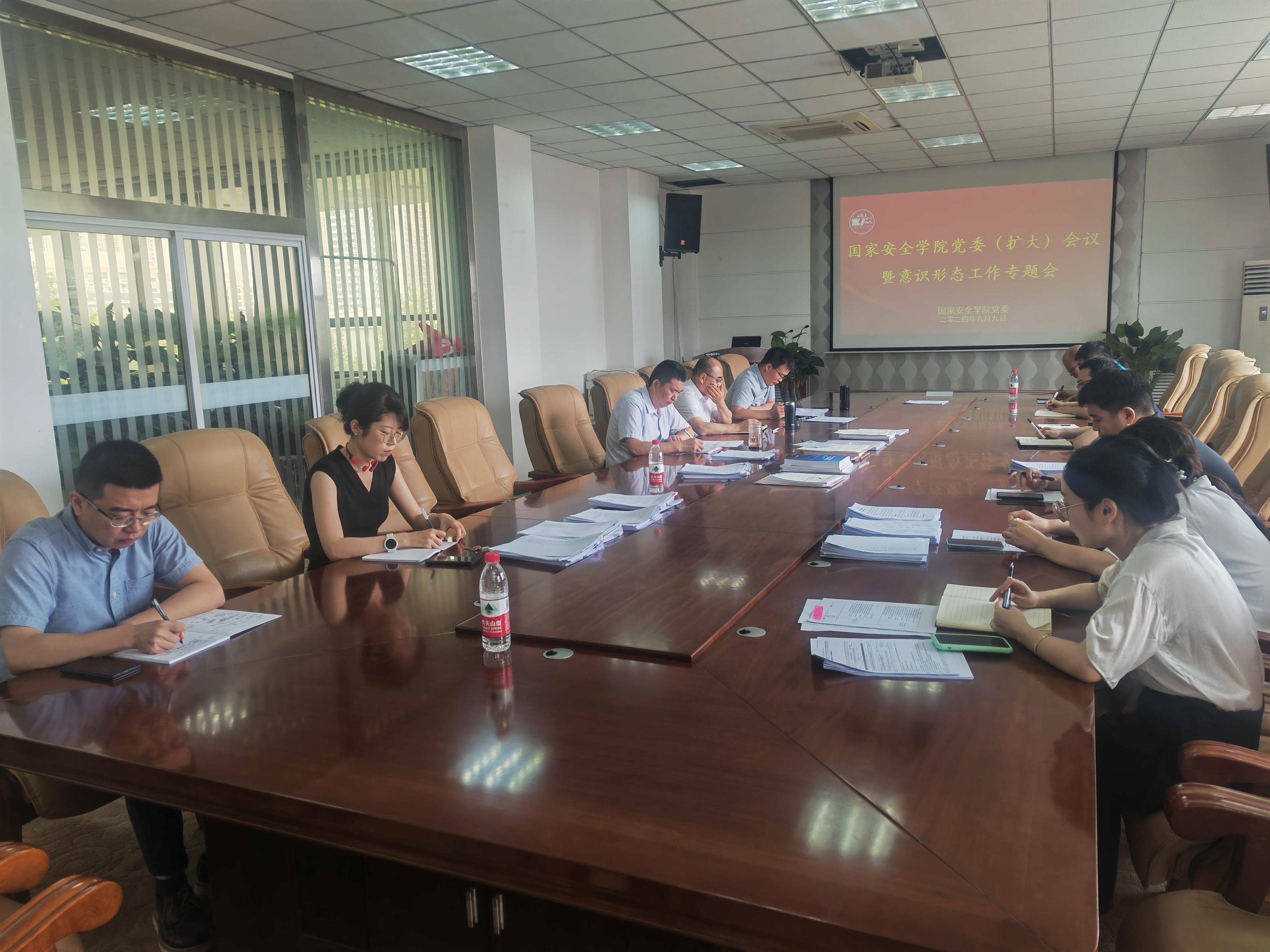 9月9日上午,国家安全学院召开党委(扩大)会议,专题研究部署2024下半学期学院意识形态工作。院党委委员、在校领导班子成员、党支部书记、行政教辅、辅导员参加会议。学院党委书记李政敏主持会议。