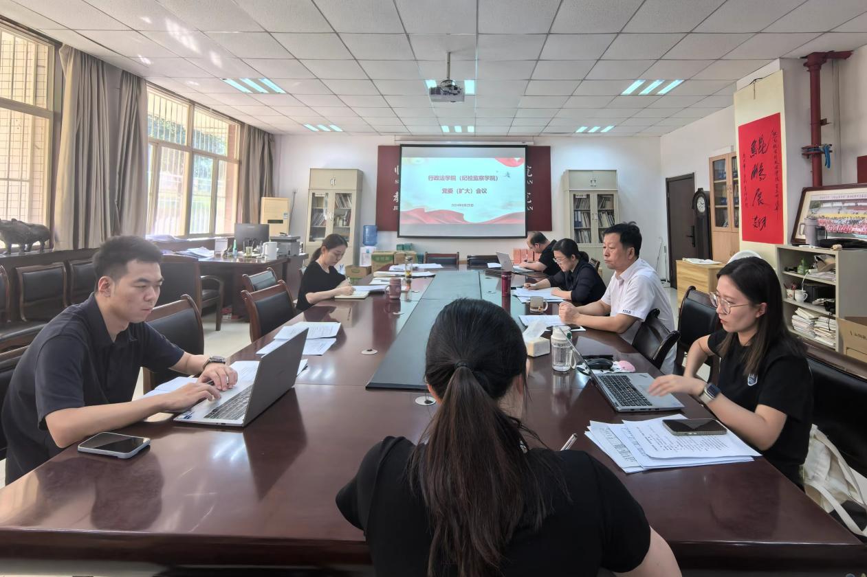 9月25日下午,行政法学院(纪检监察学院)在学院资料室召开党委(扩大)会议,对学院党纪学习教育进行总结。学院党委委员、全体支部书记、科级干部参加,学院党委书记赵玎玎主持会议。