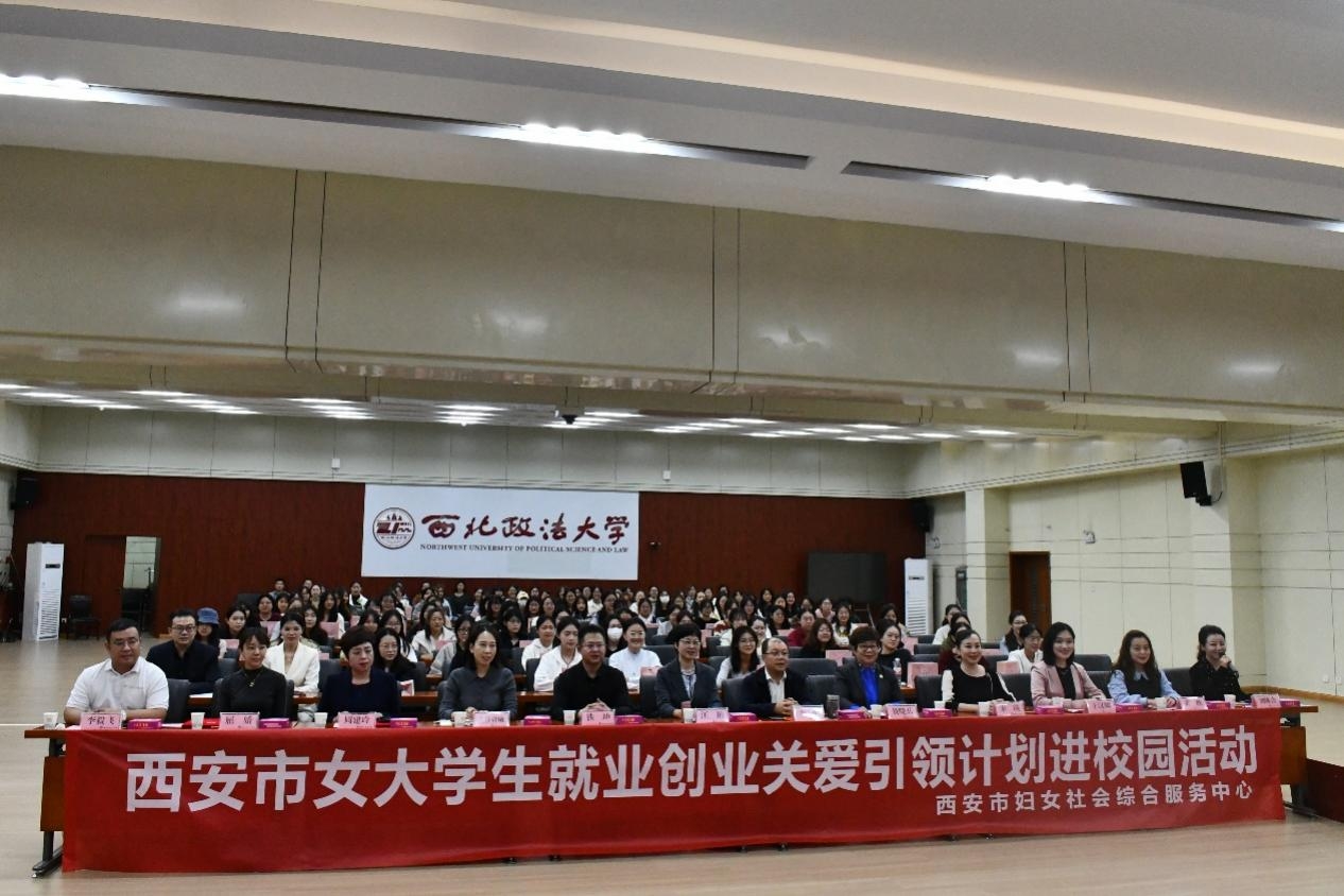 为切实增强新生职业规划能力,助力女大学生提升就业创业综合技能,树立正确的择业观、就业观,由西安市妇女社会综合服务中心、我校招生就业处和民商法学院共同举办的西安市就业创业关爱引领计划进校园活动于10月17日在图书馆一楼报告厅举行。西安市妇女社会综合服务中心主任汪艳,我校民商法学院、招生就业处负责同志,多领域女企业家代表及民商法学院师生代表参加活动。