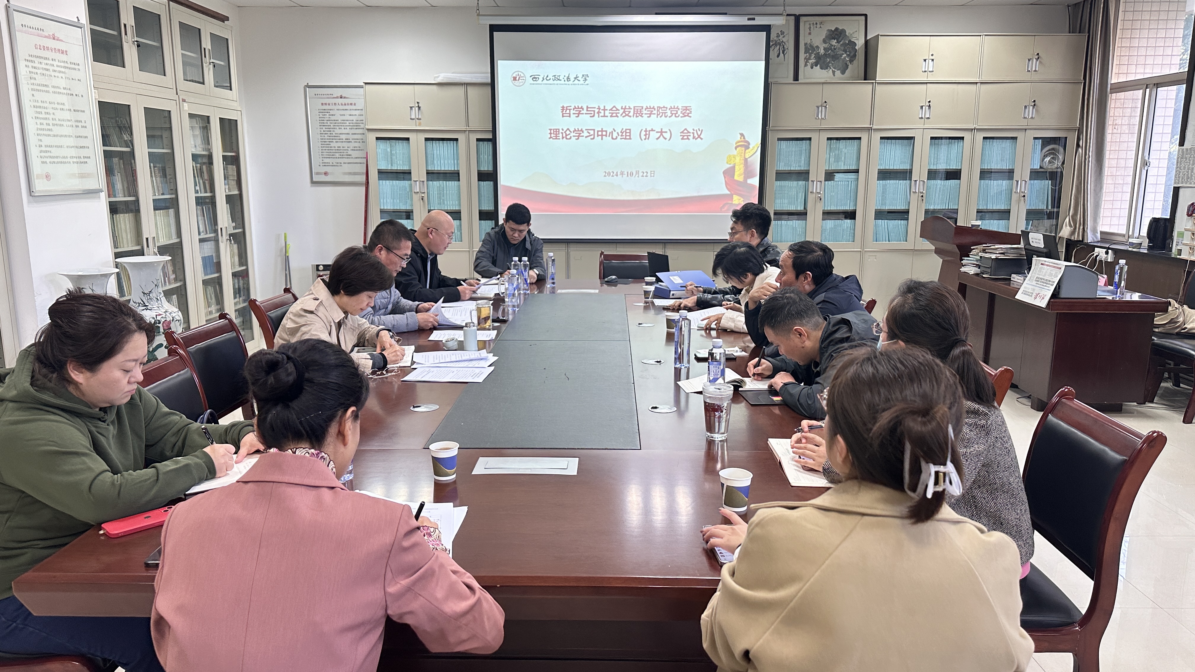 10月22日下午,哲学与社会发展学院党委理论学习中心组(扩大)会议在学院会议室召开。校党委委员、研工部部长宋白列席旁听。学院领导班子成员、党委委员、各党支部书记参会学习。会议由院党委书记寇汉军主持。