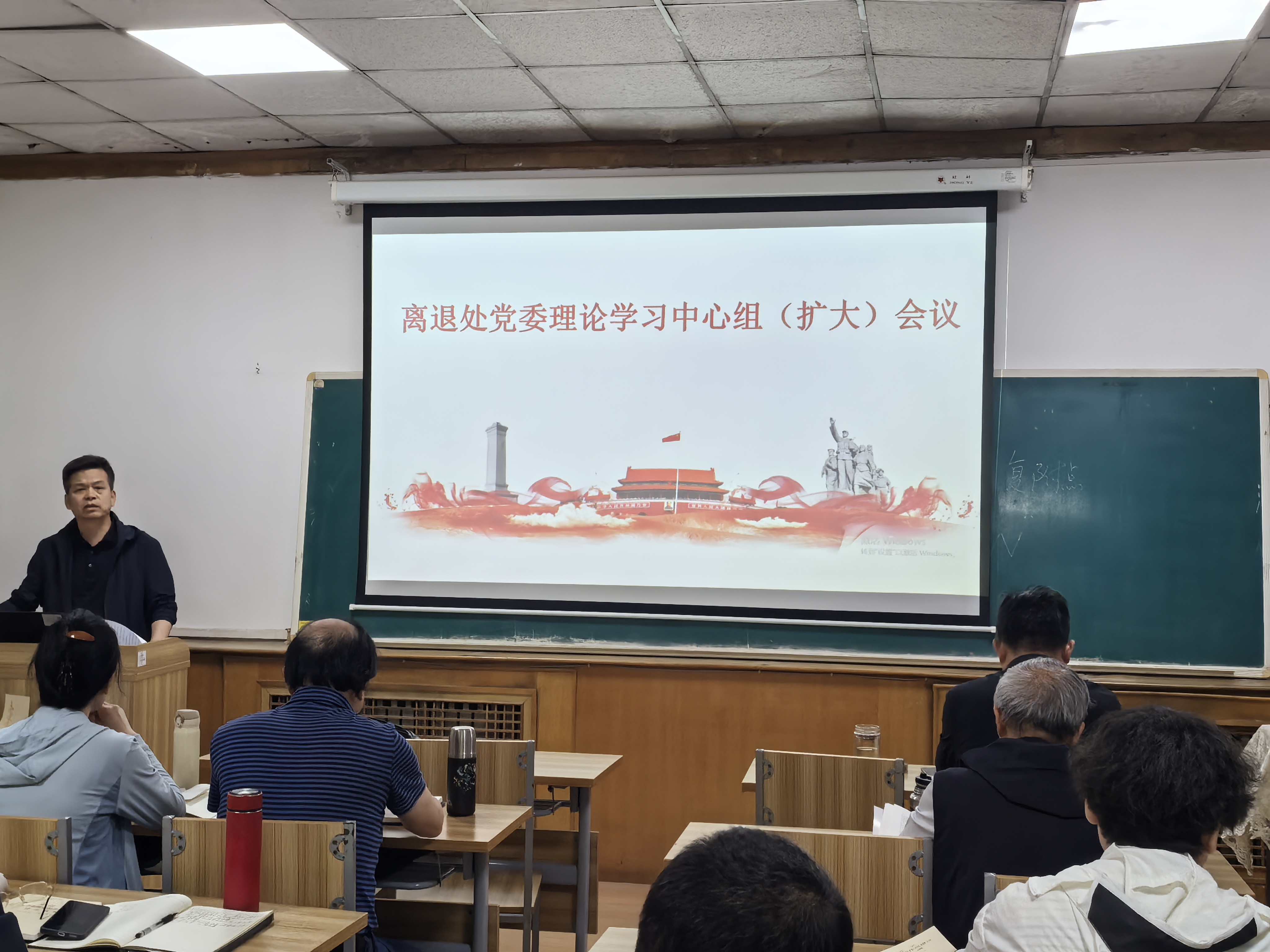 4月28日下午,离退处党委理论学习中心组召开学习会议。党委委员、各支部书记、行政党支部党员参加。会议由离退处党委书记陈永康主持。
