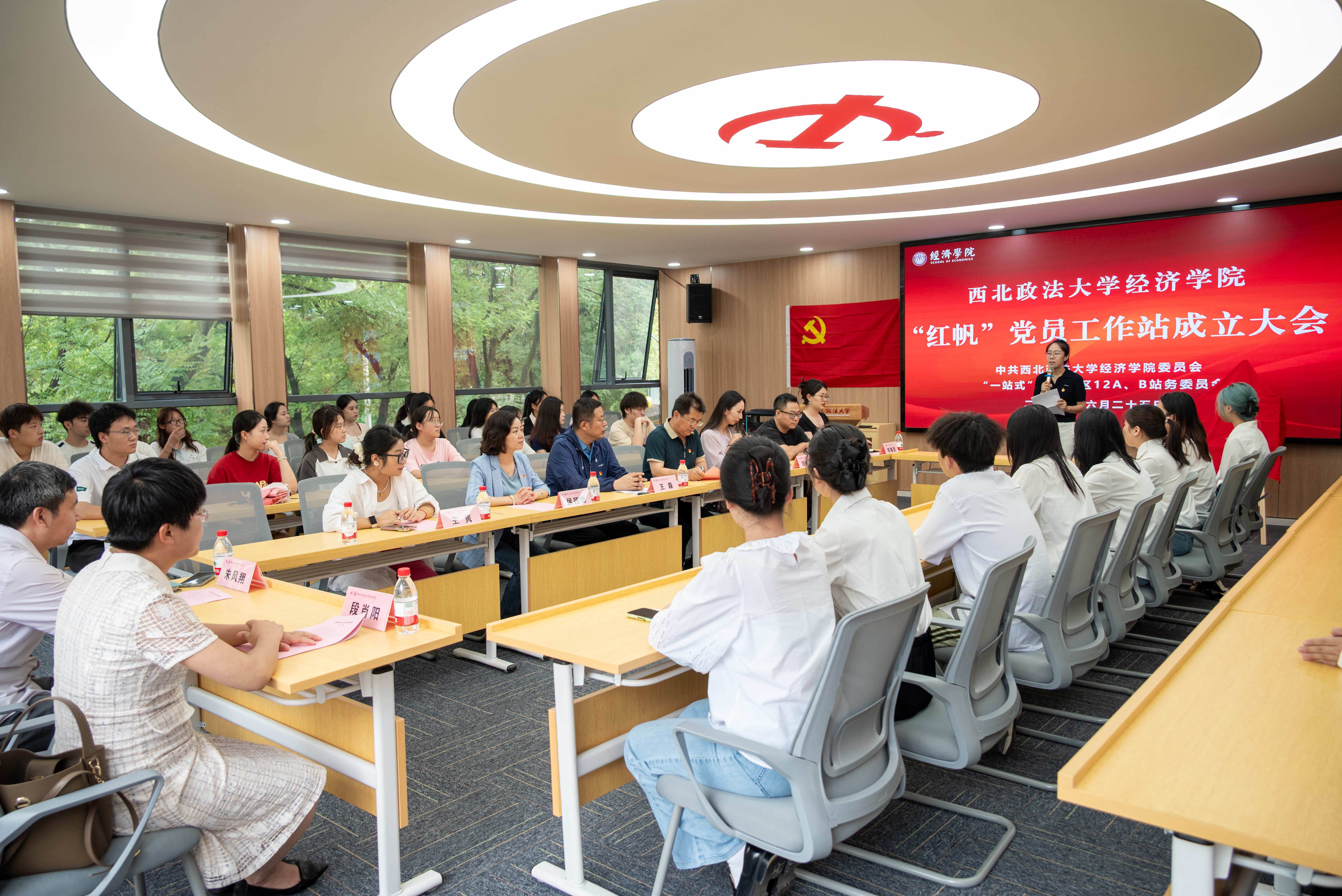 为落实立德树人根本任务,推动党建工作与“一站式”学生社区建设深度融合,打通党建引领学生成长“最后一公里”,6月25日,经济学院在枫桥·“一站式”学生成长发展中心举行“红帆”党员工作站揭牌仪式。学院党政领导及工作站指导教师、学生代表参加活动。会议由经济学院团委书记刘佳主持。