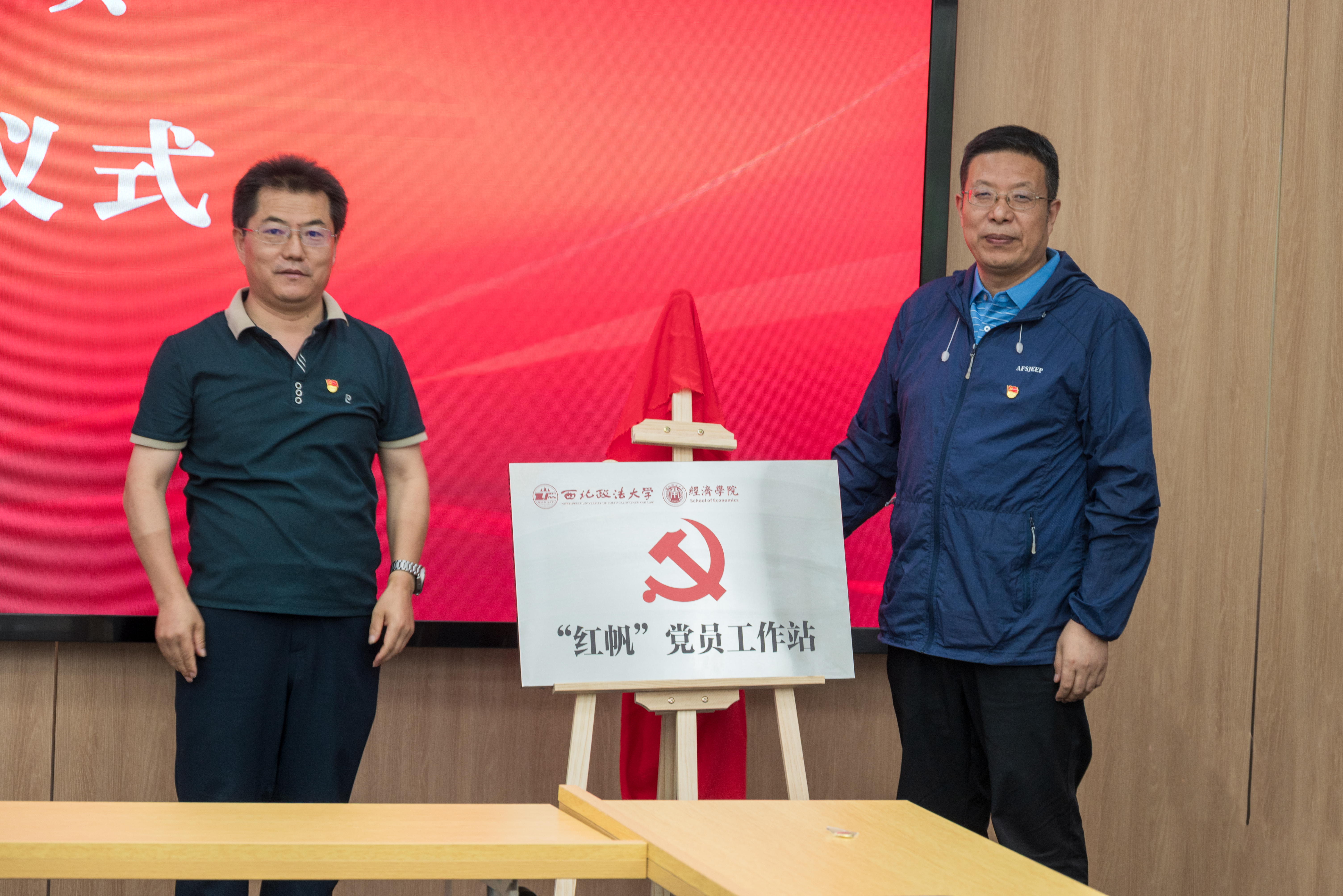 经济学院党委书记王森与学院院长王胜利共同为工作站揭牌