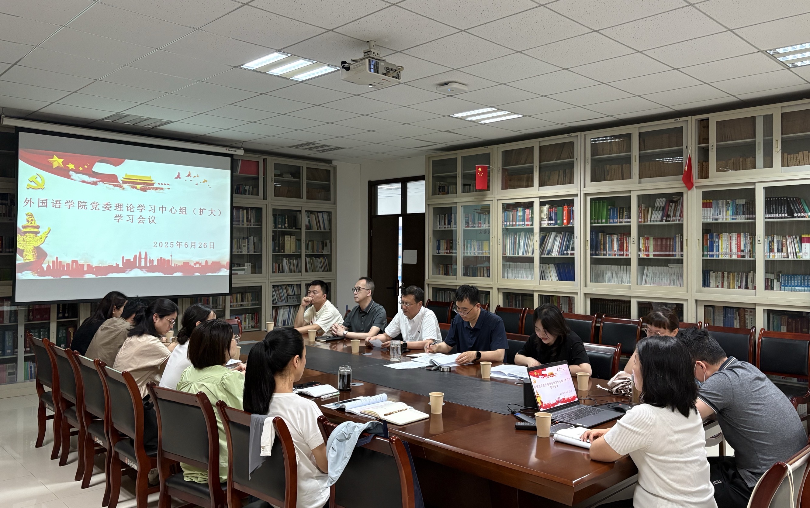 6月26日,外国语学院党委在学院资料室召开理论学习中心组(扩大)学习研讨会议。学院领导班子成员、党委委员、党支部书记、科级以上干部参加会议,学院党委书记杨华主持。