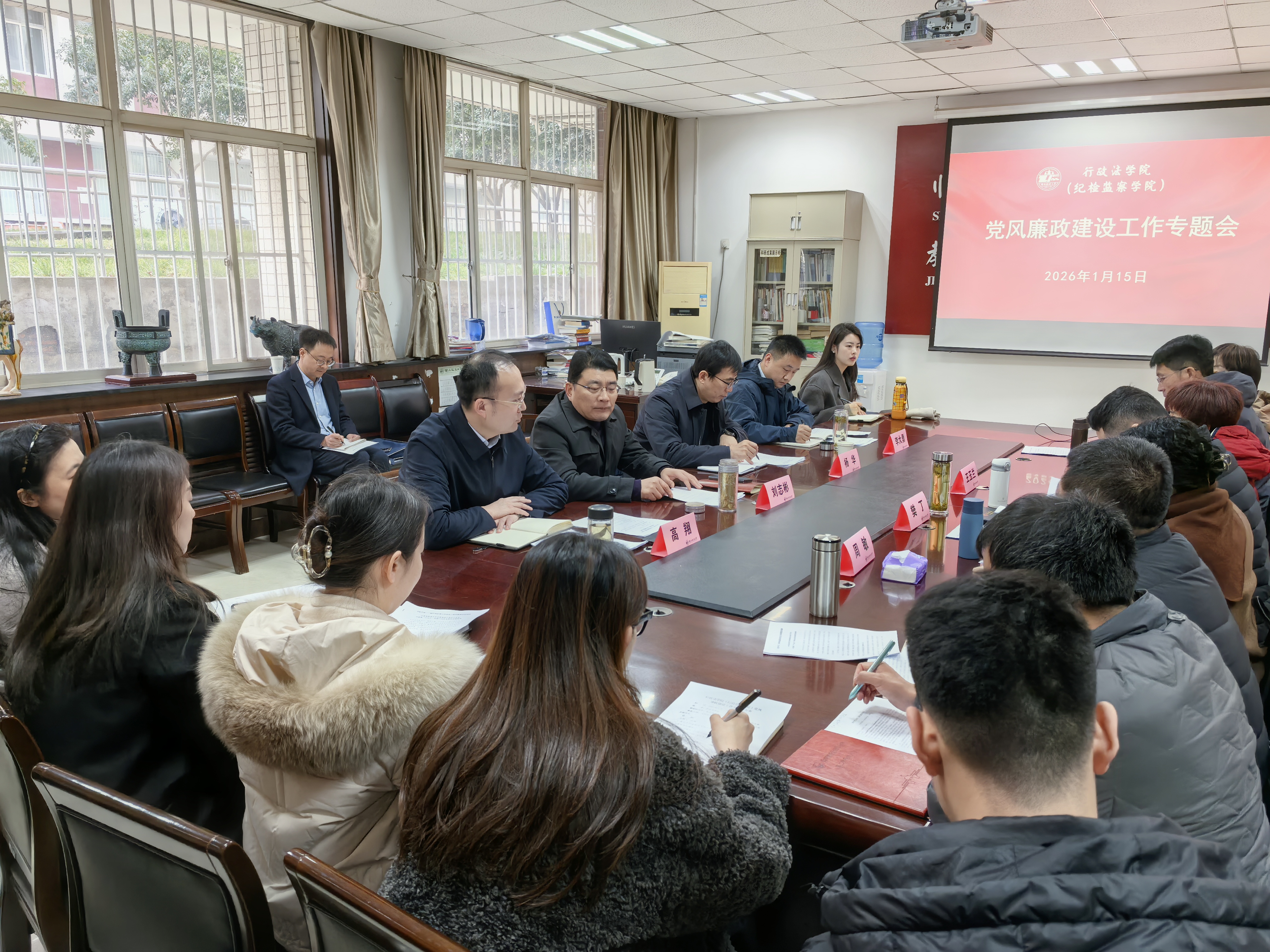 为深入学习贯彻二十届中央纪委五次全会精神,全面落实校党委关于党风廉政建设的工作部署,1月15日,行政法学院(纪检监察学院)召开2026年度党风廉政建设工作专题会。校党委副书记、纪委书记、监察专员刘志彬出席会议并讲话,学院党委委员、教师党支部书记、行政干部及辅导员参加会议,会议由学院党委书记高翔主持。