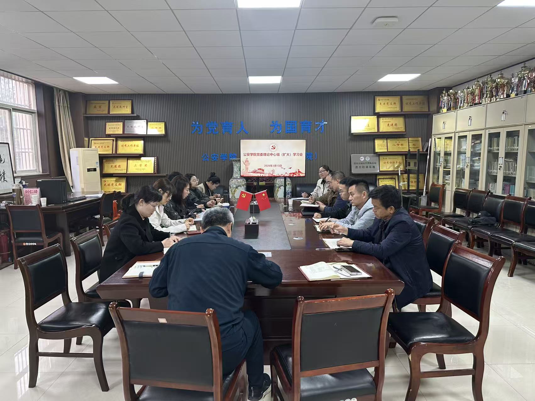 3月13日,公安学院党委召开理论学习中心组(扩大)学习会议。学院党委理论学习中心组成员、党支部书记、科级干部参加学习。学院党委书记上官亚敏主持会议。