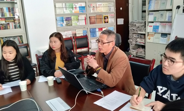 10月26日上午,外国语学院“弘扬爱国奋斗精神,建功立业新时代”师生座谈会在致知楼资料室召开。会议邀请了马克思主义学院刘建国老师做主题报告。外国语学院领导班子全体成员、各教研室主任、各党支部书记及教师和学生代表参加会议。会议由学院党委书记燕福民主持。