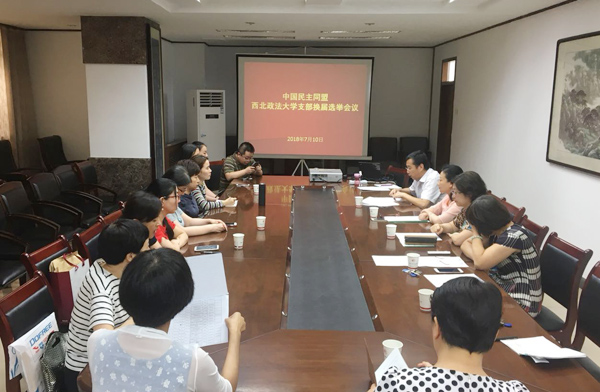7月10日下午,中国民主同盟西北政法大学支部换届选举大会在我校长安校区校务楼第二会议室召开。校党委统战部部长李宝丽,民盟陕西省委员会组织部部长蔡敏之、组织部干部杨明等出席会议。