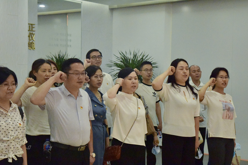 带着“为了谁?依靠谁?我是谁?”的问题,全体党员在2600平方米的基地展厅内依次参观了“省、心、律、诫、儆、光、率、进、诺”九个篇章,开启了一场以“弘扬延安精神、净化政治生态”为主题的思想净化之旅。在一行行文字、一张张图片、一段段视频、一个个真实案例的强烈视觉、听觉冲击下,党员们身临其境般感受了秦岭违建、领导干部贪污腐败、家风和作风不正等违纪违规违法事实的惨痛教训。一路走、一路看、一路思考……在展厅最后章节“诺”处,党员们对镜正衣冠,重温入党誓词,做出庄严承诺。
