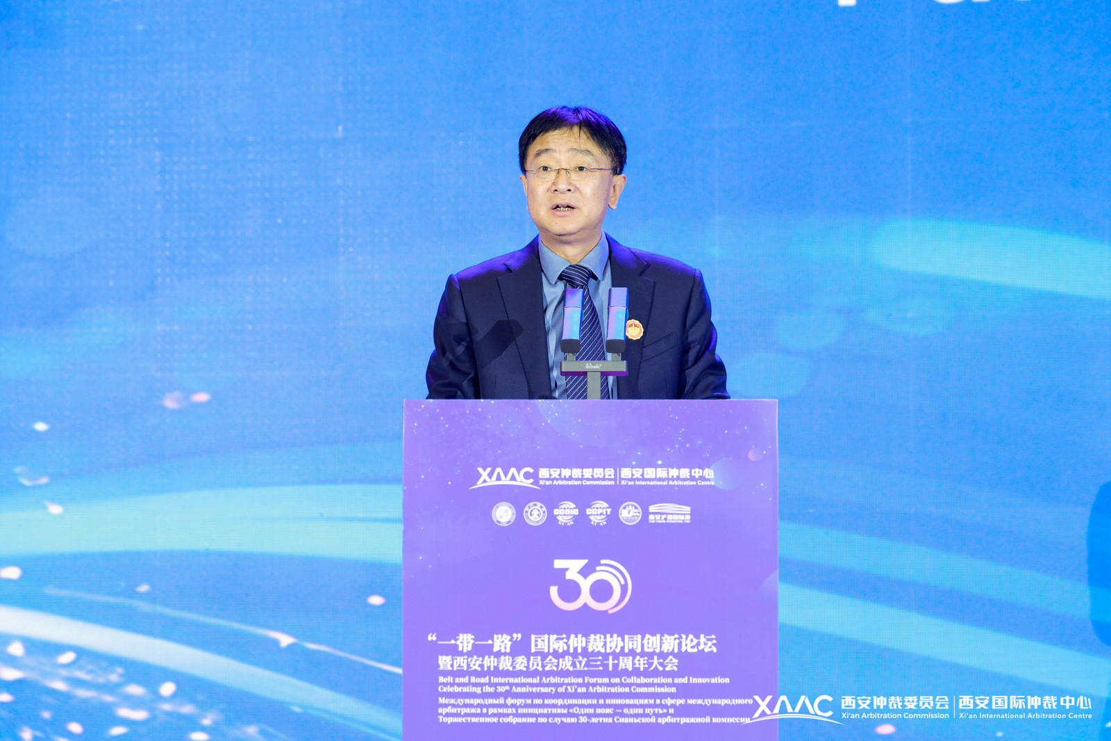 12月29日,“一带一路”国际仲裁协同创新论坛暨西安仲裁委员会成立三十周年大会在西安国际会议中心举行,校长范九利应邀出席会议。