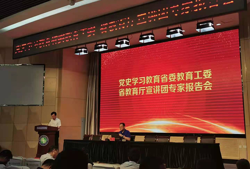 6月2日,省委教育工委、省教育厅党史学习教育宣讲团成员、我校马克思主义学院院长魏奇教授应邀到陕西铁路工程职业技术学院作《从党史学习中汲取民族复兴的力量》专题报告。陕铁院党委书记王津主持报告会,在校领导、全体处科级干部、党支部书记、马克思主义学院教师、辅导员及学生党员代表等300余人聆听了报告会。