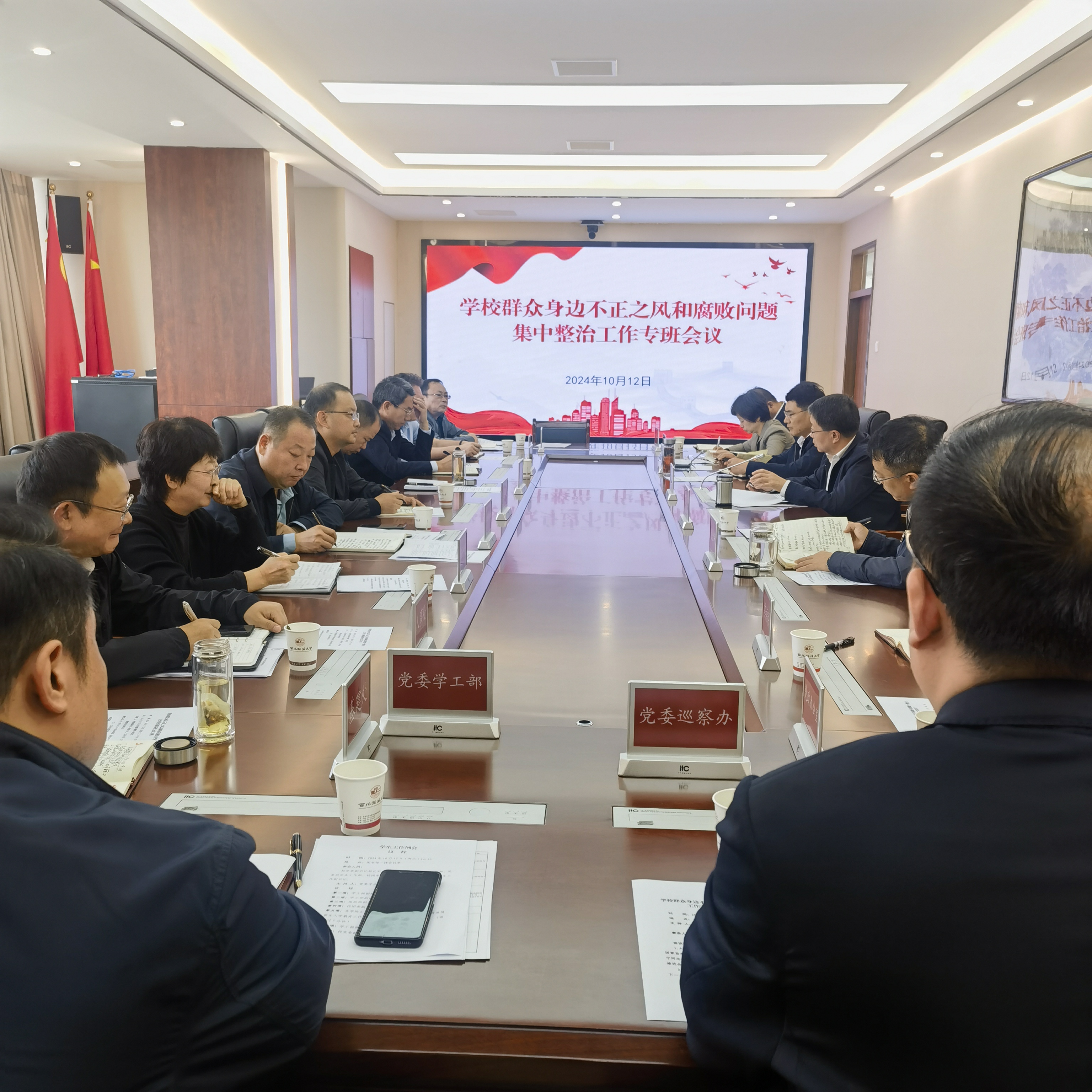 10月12日上午,学校召开群众身边不正之风和腐败问题集中整治工作推进会,进一步统一思想、统一意志、统一行动,对学校集中整治工作进行再加力、再推动。校党委书记、工作专班组长孙国华出席会议并讲话,校党委副书记、校长、工作专班组长范九利,校党委委员、副校长、工作专班副组长赵全宇出席会议,校党委副书记、纪委书记、监察专员、工作专班副组长刘志彬主持会议。