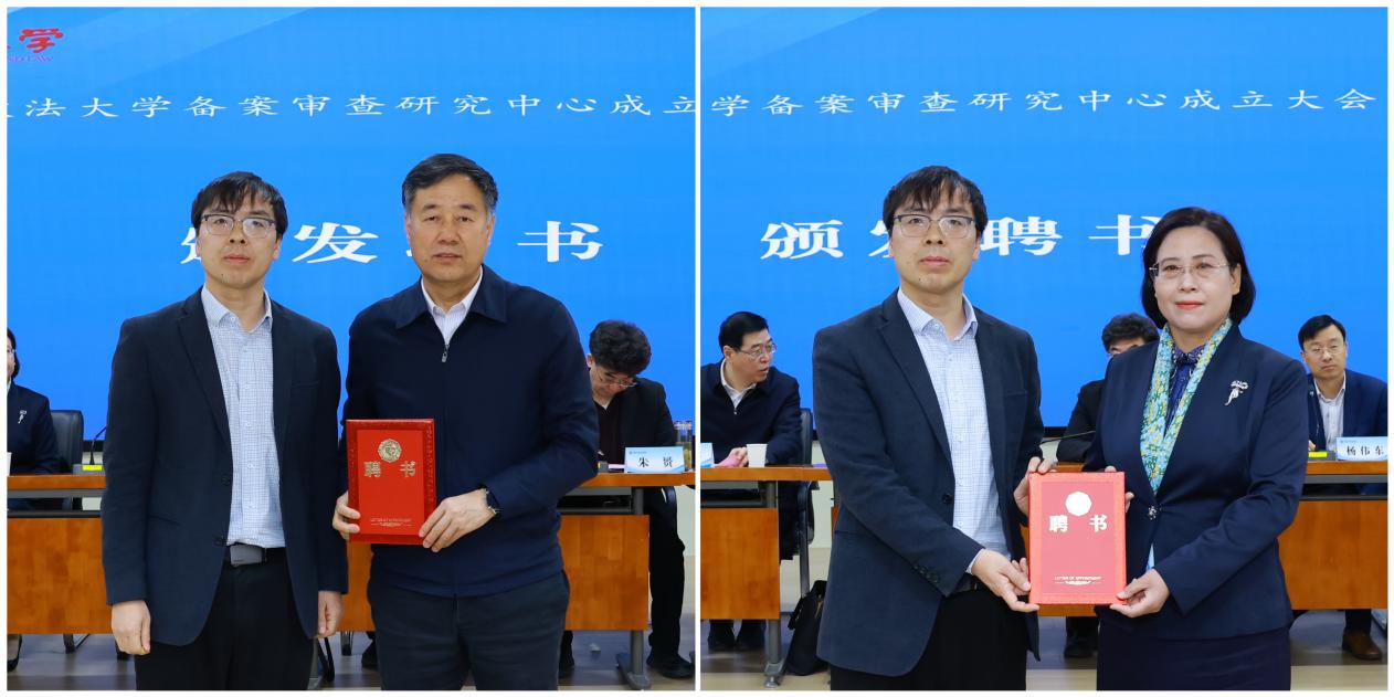 西北政法大学备案审查研究中心主任杜国强教授向中心顾问、学术委员会委员代表颁发聘书