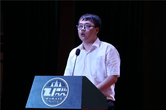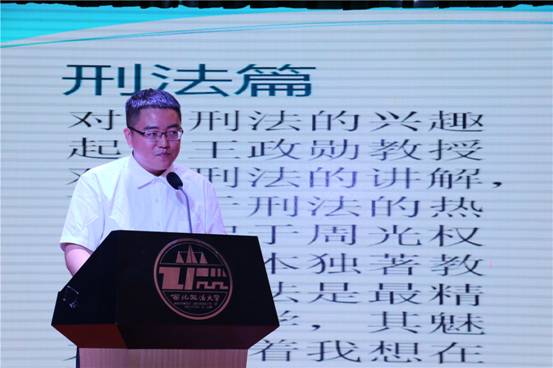推免至中国人民大学刑法学专业的刑事法学院学生石佳宇以《在荆棘之路的尽头等你》为题,讲述了成功的基础在于找对方向和方法,他以自己对刑法的热爱,立志走好这段荆棘陡峭的法律之路。