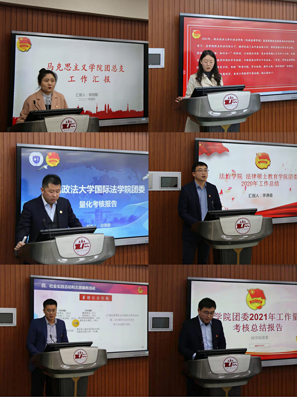本次述职评议工作是落实全面从严治团激发基层团组织活力,加强基层团组织建设的重要举措。校团委从强化思想政治教育、加强基层组织建设、服务学生成长发展、推进团学改革攻坚等4个方面17项重点工作修订了指标体系,共设置了84个观测点,确保各项工作落实落细落地。综合学院自评、材料评定和现场述职情况,民商法学院团委、国际法学院团委、经济学院团委、新闻传播学院团委、商学院团委荣获2020—2021年度“五四红旗团委”荣誉称号。