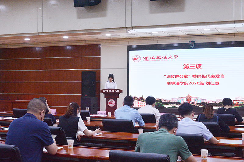 “思政进公寓”楼层长代表刘佳慧同学和“党员先锋模范宿舍”代表张国栋同学分别进行了分享发言。