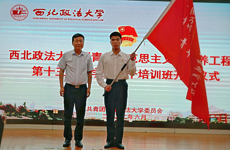 仪式上,校党委学工部部长、学生处处长燕福民同志宣读了《关于举办西北政法大学“青年马克思主义者培养工程”第十三期大学生骨干培训班的通知》,校党委组织部副部长李君同志宣读了《第十三期大骨班开课方案》,郭武军为第十三期大学生骨干培训班学员代表授旗。