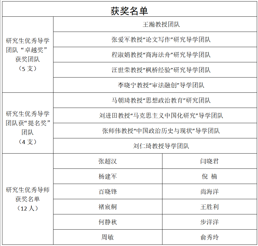 研究生优秀导学团队“卓越奖”
