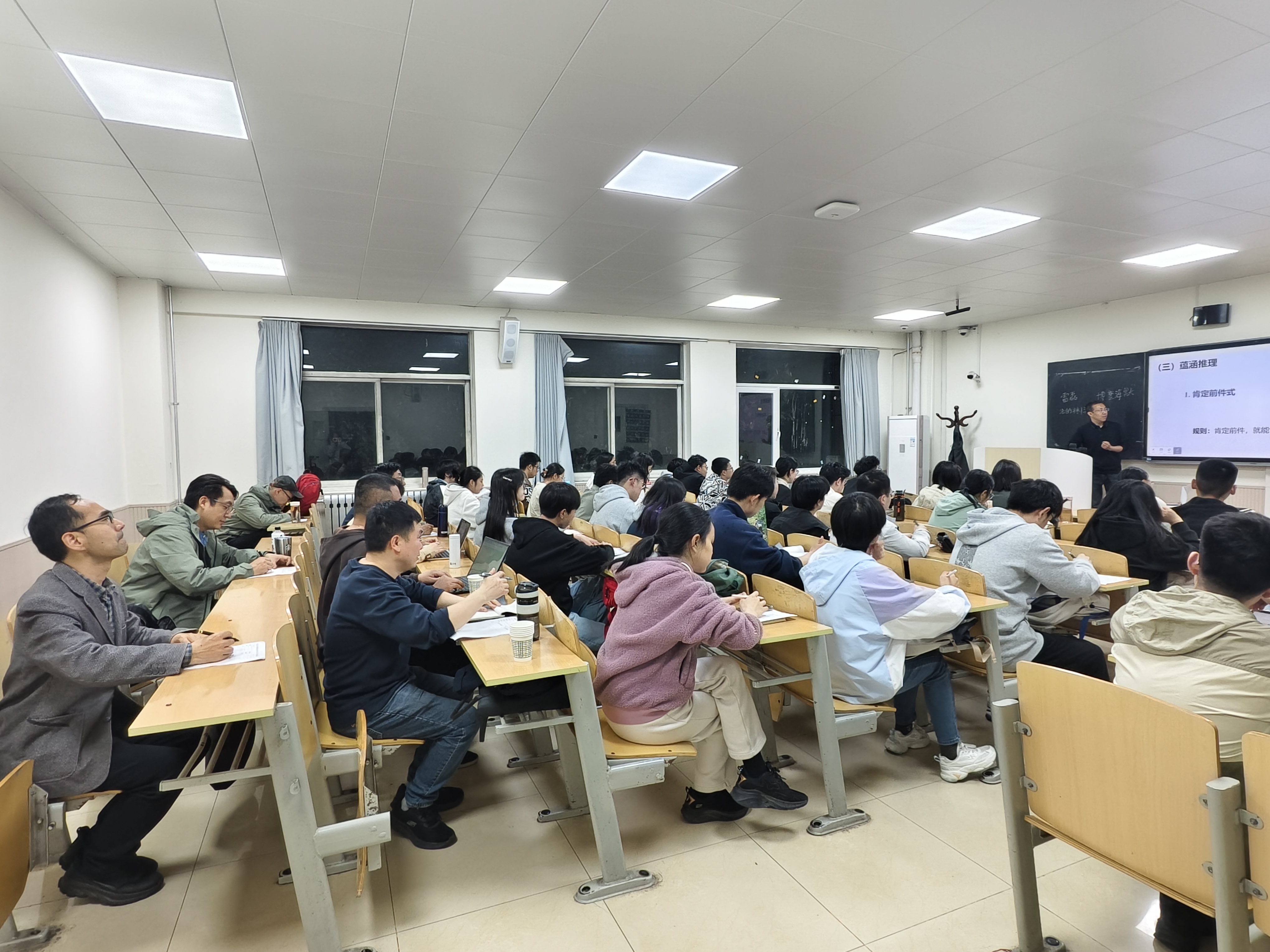 专家组走进课堂一线,全程观摩教学实况,围绕课程思政融入、逻辑思辨能力培养、课堂教学设计优化、核心素养落地路径等方面细致分析。课后双方召开专题座谈交流,专家组对我校“逻辑学”课程建设成效给予高度认可,指出课程紧密结合我校法学办学优势,推动逻辑理论与法学实务教学有机结合,课程架构、育人导向均契合省级通识核心素养课程建设总体要求。同时专家组结合课程短板与提升方向,从教学内容打磨、课堂模式创新、教研成果凝练等维度,给出针对性改进建议。