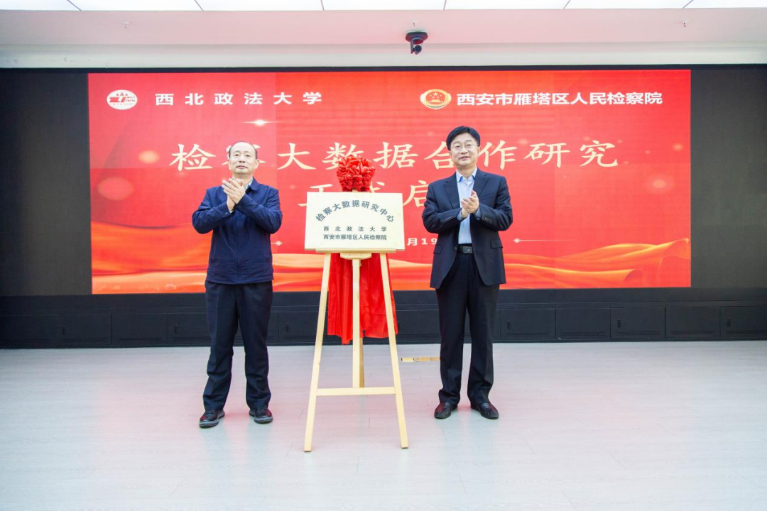 10月19日上午,学校与雁塔区人民检察院共建的“检察大数据研究中心”揭牌仪式在雁塔区人民检察院举行。西安市人民检察院党组书记、检察长陈明,西北政法大学党委副书记、校长范九利出席活动并为研究中心揭牌。