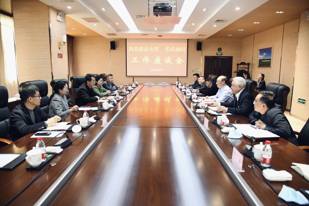 王琛对张军政一行的到来表示欢迎,对西北政法大学多年来给予长庆油田的支持表示感谢。王琛表示,西北政法大学红色基因浓厚、办学特色鲜明,是被誉为政法人才培养国家队的“五院四系”之一,是西北地区法学教育、法学研究中心和人文社会科学研究的重要基地。一直以来,西北政法大学和长庆油田有着广泛的合作基础,双方充分发挥校企合作优势,建立了良好的合作关系,取得了良好的合作效果。希望双方今后在公司治理体系和治理能力现代化理论研究、法律服务研讨交流、新型校企合作人才培养等方面加强合作,提升法治信仰和法律实践能力,实现法学教育和企业法治建设的共同进步。