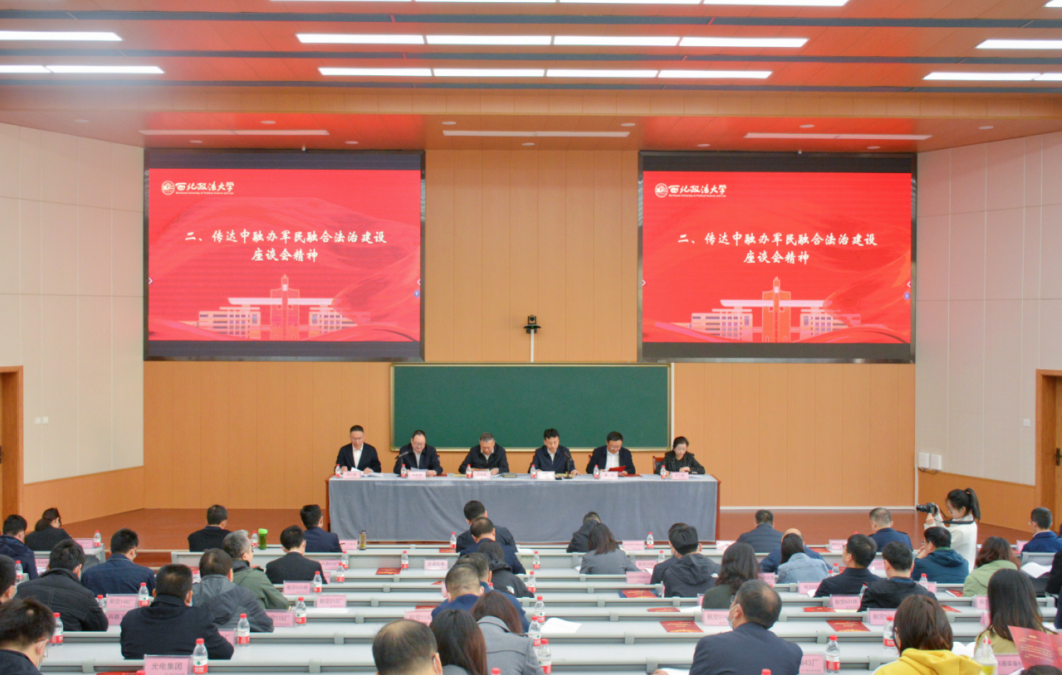 马朝琦代表学校对省委军民融合办长期以来的信任与支持表示感谢,对与会同志的到来表示热烈欢迎。他指出,我校作为一所从延安走来具有红色血脉的高等学府,具有深厚的红色文化底蕴,打造了一支特色鲜明的融合发展师资团队,发挥学校学科和人才优势,为我省国防科技工业法治建设贡献西法大智慧。他要求学校相关部门要进一步统筹资源,建强特色研究队伍,加快专业人才队伍建设,推动高水平研究成果的产出和转化,以强化法治保障助力我省国防科技工业高质量发展,为我省国防科技工业法治建设建言献策、献计出力。