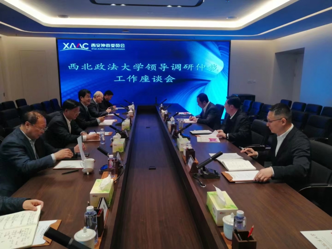 3月30日下午,校长范九利、副校长张荣刚带队赴西安仲裁委员会调研交流,西安仲裁委员会主任李洪涛、副主任兼秘书长徐文新会见了范九利一行,双方围绕校仲合作进行了座谈交流。